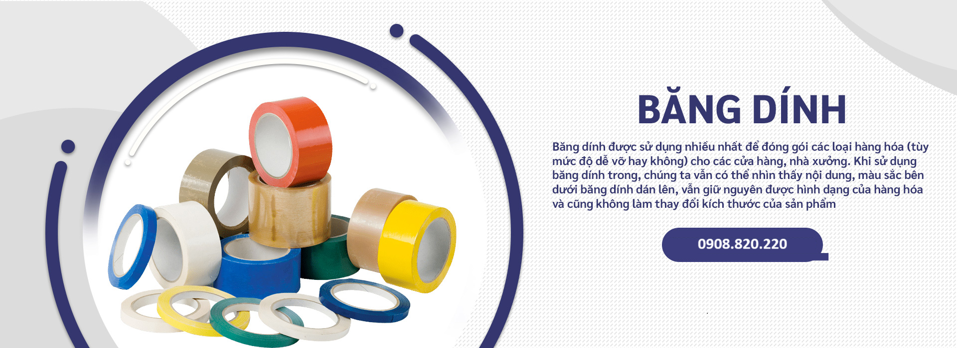 – Băng dính OPP: là loại băng dính dán thùng carton hoặc các loại đồ đóng gói khác, có độ dai và dính tốt, được sử dụng phổ biến nhất trên thị trường
